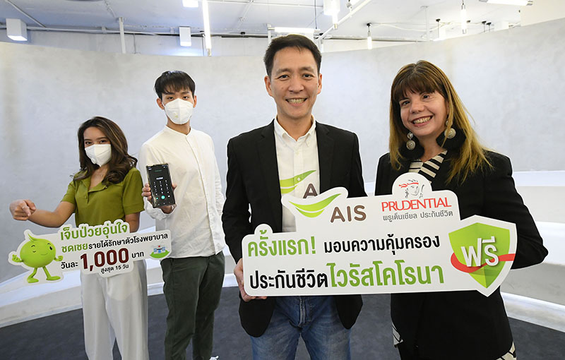 เอไอเอส ผู้นำบริการดิจิทัลที่ห่วงใย และพร้อมดูแลลูกค้าให้อุ่นใจยิ่งกว่าเดิม ผนึก บริษัท พรูเด็นเชียล ประกันชีวิต (ประเทศไทย) จำกัด (มหาชน) (“พรูเด็นเชียล ประเทศไทย”) มอบกรมธรรม์ประกันชีวิตไวรัสโคโรนา (โควิด-19) ให้แก่ลูกค้าเอไอเอส ฟรี! ครั้งแรกของไทย มอบความคุ้มครองชีวิต 50,000 บาท นาน 30 วัน ตลอด 24 ชั่วโมงทั่วโลก ครอบคลุมการเสียชีวิตทุกกรณี หรือหากเป็นผู้ป่วยในที่เข้ารับการรักษาตัวในโรงพยาบาล เนื่องจากติดเชื้อไวรัสโคโรนา 2019 (โควิด-19) ก็ยังได้รับความคุ้มครองชดเชยรายได้ 1,000 บาทต่อวัน สูงสุด 15 วัน สอดคล้องกับเจตนารมณ์ของเอไอเอสในฐานะ Digital Life Service Provider ที่พร้อมนำบริการดิจิทัลมายกระดับคุณภาพชีวิตของคนไทย