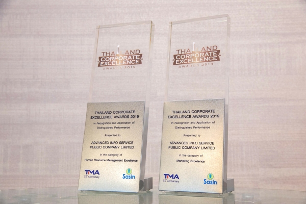 AIS รับรางวัลดีเด่นด้านการตลาดและการจัดการทรัพยากรบุคคล จากเวที Thailand Corporate Excellence Awards 2019 จัดโดยสมาคมการจัดการธุรกิจแห่งประเทศไทย (TMA) ร่วมกับสถาบันบัณฑิตบริหารธุรกิจศศินทร์ แห่งจุฬาลงกรณ์มหาวิทยาลัย โดยมีนางศิวลี บูรณสงคราม หัวหน้าแผนกงานบริหารแบรนด์ และนางสาวจันทนา พันธวิชาติกุล หัวหน้าแผนกงานบริหารค่าตอบแทน และสิทธิประโยชน์ เป็นผู้รับรางวัลจากพลเอก ประยุทธ์ จันทร์โอชา นายกรัฐมนตรี โดยรางวัลนี้ มอบให้แก่องค์กรที่มีความเป็นเลิศในการบริหารจัดการด้านต่างๆ และมีความเหมาะสมที่จะเป็นต้นแบบให้กับองค์กรอื่นๆ ได้ศึกษาเรียนรู้และนำแนวทางมาพัฒนาบริหารจัดการองค์กรของตนเองให้ดียิ่งขึ้น