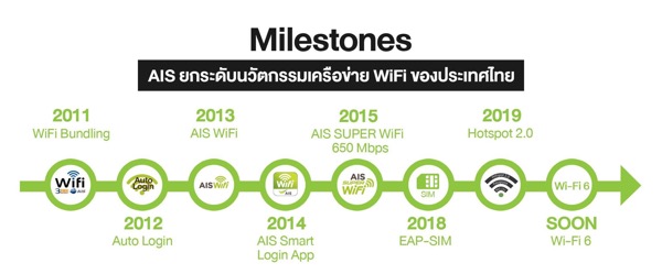 • AIS โชว์ศักยภาพ ผู้นำนวัตกรรมเครือข่ายดิจิทัล อันดับ 1 ของไทย รุกสร้างมาตรฐานใหม่ให้อุตสาหกรรมโทรคมนาคมของประเทศไปอีกขั้น ประกาศความร่วมมือกับ Samsung ผู้นำสมาร์ทดีไวซ์ระดับโลก นำเทคโนโลยีใหม่ WiFi Hotspot 2.0 มาเปิดให้บริการเชิงพาณิชย์ได้สำเร็จ เป็นรายแรกและรายเดียวในไทย ใช้งานได้จริงอย่างแพร่หลาย ทั่วประเทศกว่า 100,000 จุด ต่อยอดศักยภาพเครือข่าย AIS NEXT G ซึ่งควบรวมความเร็วของเครือข่าย WiFi และ 4G เข้าด้วยกัน ทำให้ลูกค้าสามารถเข้าถึงการใช้งาน AIS NEXT G ได้อย่างแพร่หลายมากยิ่งขึ้น มอบประสบการณ์การใช้งานอินเทอร์เน็ตที่สะดวกสบายยิ่งกว่าเดิมให้กับลูกค้าและคนไทยในยุคดิจิทัล