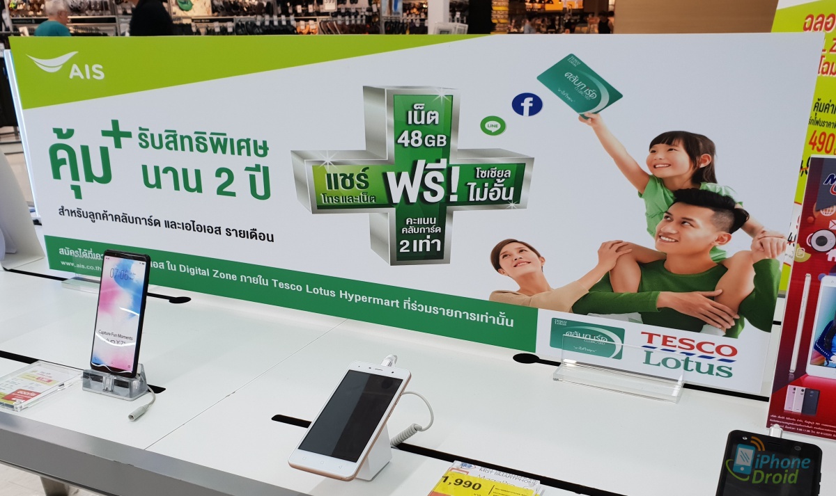 วันนี้จะไปชม Digital Zone ที่เทสโก้โลตัสกันครับ โดยเป็นความร่วมมือระหว่าง AIS และ Tesco Lotus ได้เนรมิตรพื้นที่ Digital Zone ในไฮเปอร์มาร์ท 190 สาขาทั่วประเทศ ให้ลูกค้าทดลองใช้ และเลือกซื้อสมาร์ทโฟนรุ่นใหม่ล่าสุด พร้อมอุปกรณ์เสริมต่างๆ ได้อย่างสะดวกสบายมากยิ่งขึ้น พร้อมบริการต่างๆ จาก AIS แบบครบวงจร อาทิ เปิดเบอร์ใหม่รายเดือน, สมัครเน็ตบ้าน AIS Fibre, สมัครแพ็กเกจต่างๆ หรือซื้อซิมได้