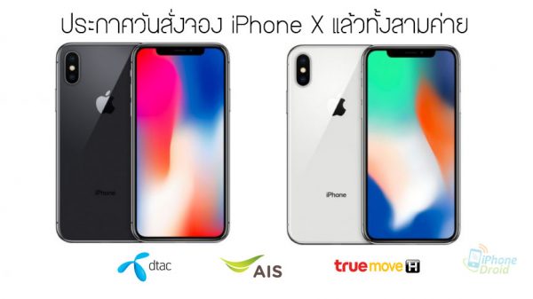 ประกาศวันสั่งจอง (Pre Order) iPhone X แล้วทั้งสามค่าย AIS,dtac,TrueMove H ในวันที่ 17 พฤศจิกายนนี้ เวลา 00:01 หรือประมาณเที่ยงคืนของวันที่ 16 และจะเปิดขายวันแรกในวันที่ 24 พฤศจิกายน (วันเดียวกับที่ Apple ประกาศขายวันแรกในไทย)