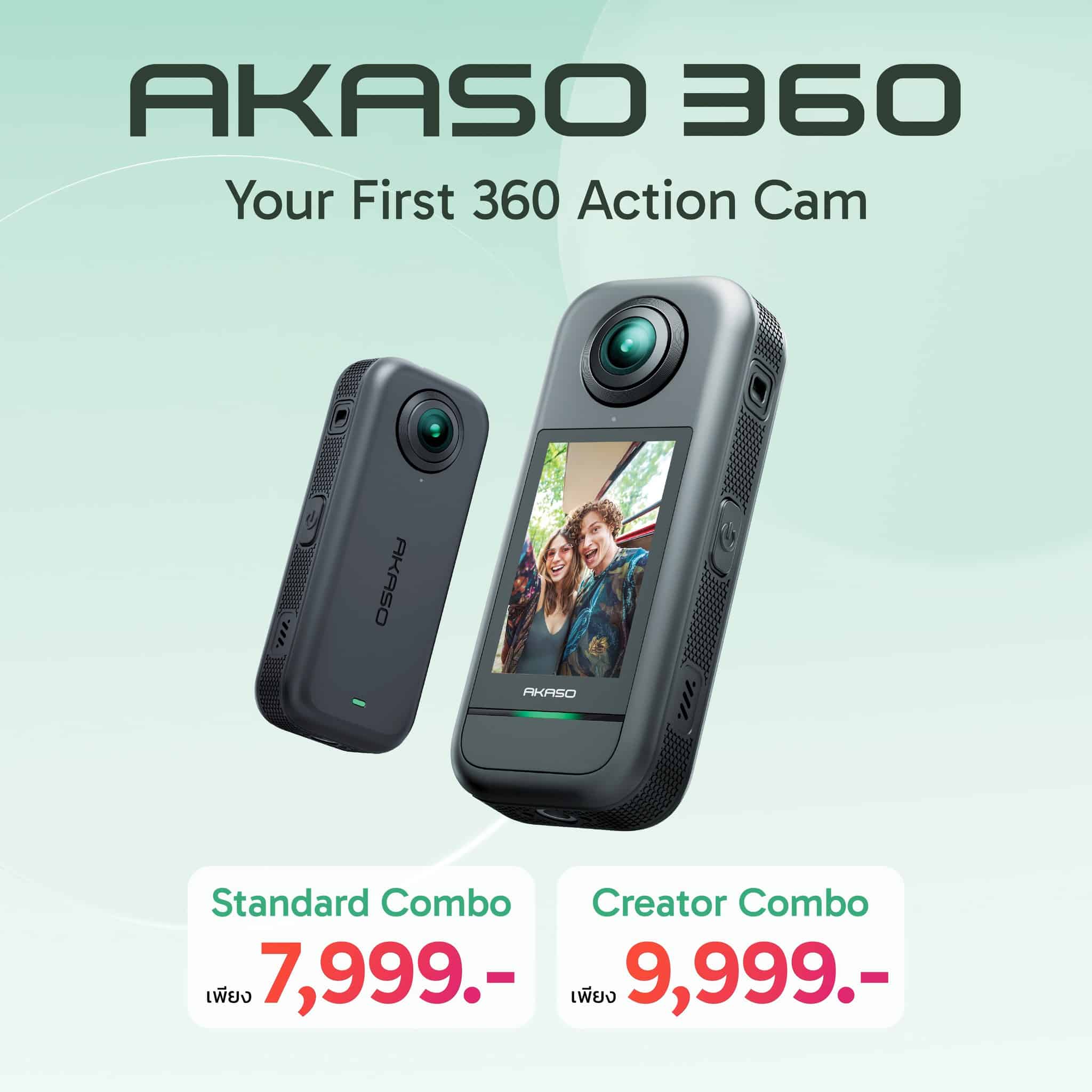 AKASO 360 Action Camera วางจำหน่ายในราคาเริ่มต้นเพียง 7,999 บาท (Standard Combo) และ 9,999 บาท (Creator Combo)