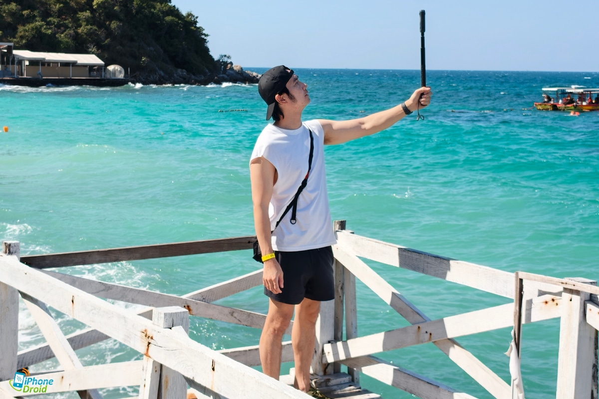 ต่อมาอีกช่วง มาแวะทะเลกันหน่อยดีกว่า เห็นแบบนี้ก็อดใจไม่ได้ที่จะใช้โหมด Drone Zooming ที่ยกไม้เซลฟี่ขึ้นไปสูงๆ เพื่อให้เหมือนกับการใช้โดรนบินในการถ่ายภาพเลย