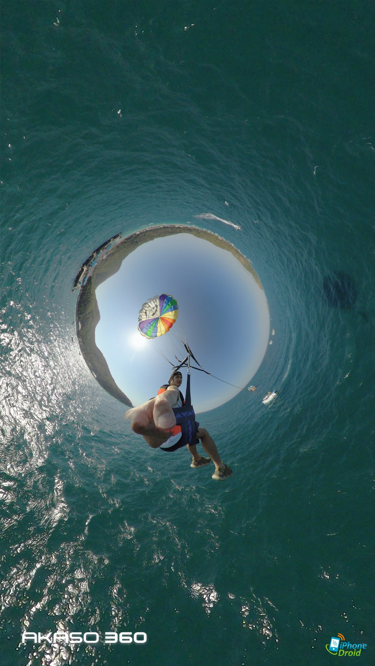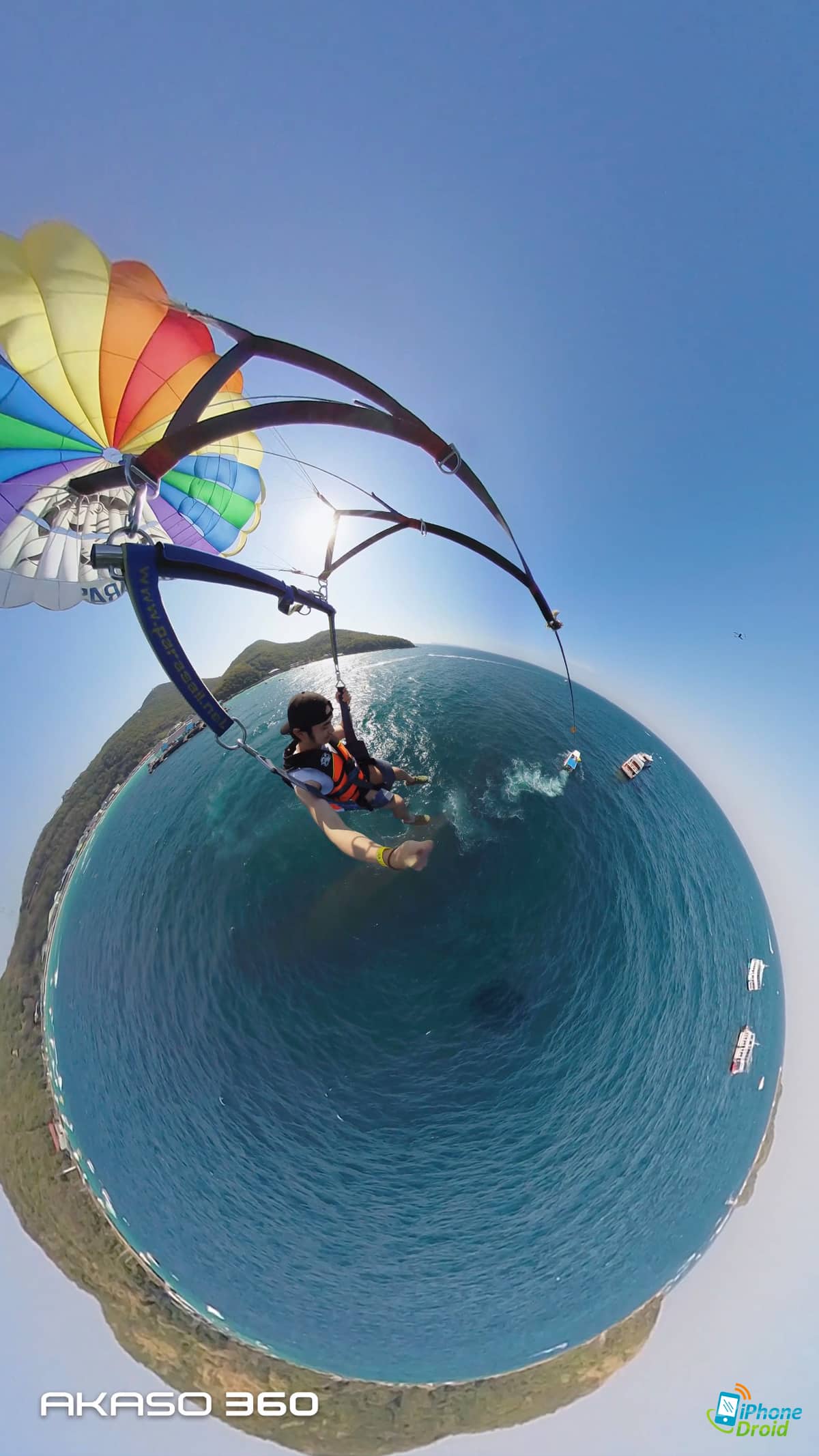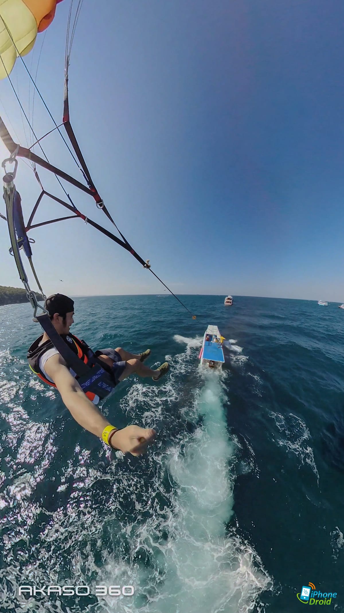 มาถึงจุดพีคของวันคือการเล่นกิจกรรม Adventure ทางน้ำอย่างพาราเซลลิ่ง (Parasailing) ที่ให้เราได้ใช้ทั้งการถ่ายในโหมด 360 องศาปกติ เห็นทั้งน้ำทะเล ท้องฟ้า และตัวเราที่บินแบบเท่ๆ อยู่ตรงกลาง และเป็นช็อตที่เหมาะมากกับการถ่ายกิจกรรมผจญจัยต่างๆ ด้วย