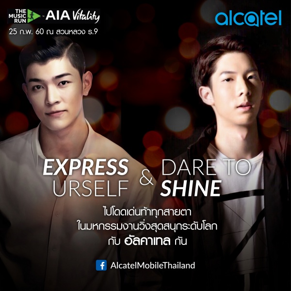 เตรียมตัวให้พร้อมแล้วออกมา Express Urself & Dare to Shine ไปกับ Alcatel ที่งาน The Music Run Bangkok 2017 ในวันที่ 25 ก.พ. 60 เวลา 17.00 – 22.00 น. ณ สวนหลวง ร.9 แล้วพบกัน!