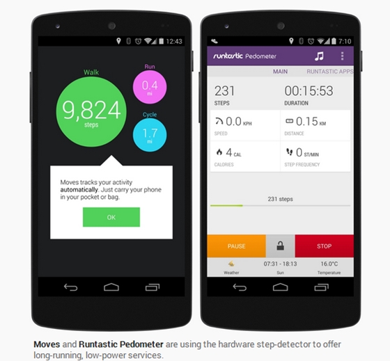 Android 4.4 KitKat มีระบบตรวจนับการเคลื่อนไหว ไม่ว่าจะเป็นการเดิน วิ่ง และการปั่นจักรยาน เหมาะสำหรับการออกกำลังกาย
