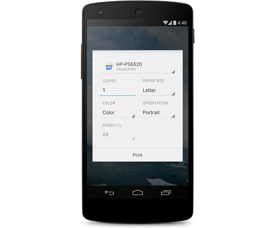 สามารถพิมพ์ภาพถ่าย, เอกสาร, และหน้าเว็บจากโทรศัพท์หรือแท็บเล็ตแบบไร้สายที่รองรับ Google Cloud Print ได้แก่ HP ePrint เป็นต้น