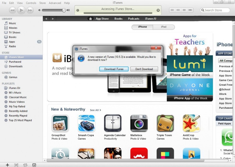 เมื่อคืนที่ผ่านมา 19/01/2012 Apple ได้จัดงาน Apple Educations เปิดตัว iBook 2 , iTunes U และ iBooks Author และในเช้านี้ทาง Apple ได้ปล่อยอัพเดท iTunes 10.5.3 มาแล้วครับ ซึ่งสามารถดาวโหลดได้ที่ http://www.apple.com/itunes/download/ หรือสำหรับท่านที่ติดตั้งแล้วสามารถอัพเดทได้จาก Help > Check for Updates (ดังตัวอย่างภาพด้านบน) และการอัพเดทในครั้งนี้เพิ่มความสามารถ Sync ระหว่าง iBooks TextBooks กับ iPad ครับ