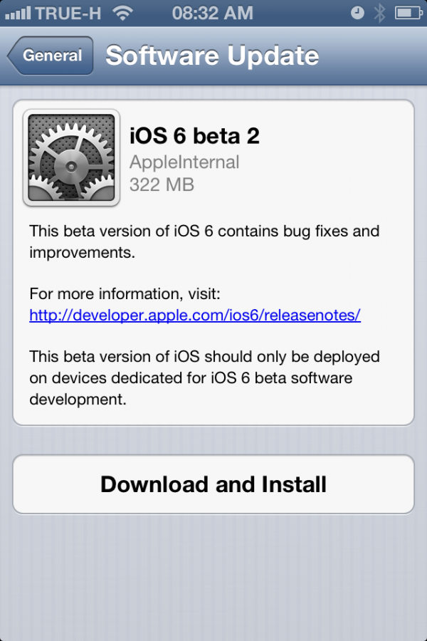 และสำหรับการอัพเดทในครั้งนี้มีสิ่งที่เปลี่ยนไปอันดับแรกคือ iOS 6 Software Update Animation ซึ่งรูปฟันเฟืองจะหมุน ๆ ในระหว่างที่ำโหลดไฟล์อัพเดทครับ สำหรับใครที่ได้ลงทะเบียน UDID แบบนักพัฒนาไว้สามารถอัพเดทได้ทันทีครับ และเมื่อเช้าแฟนเพจของเราได้อัพเดท จาก beta1 ไปยัง beta2 แบบไม่ได้ลงทะเบียน UDID แบบนักพัฒนา ก็สามารถอัพเดทผ่านเช่นกัน ดูภาพที่นี่