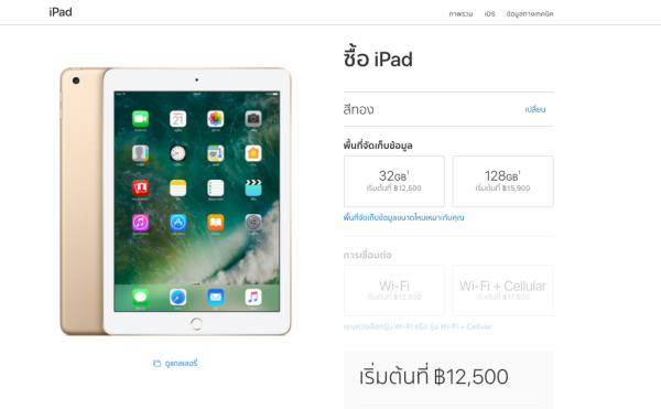 - ความจุ 32GB Wi-Fi ราคา 12,500 บาท
