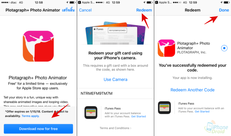 จะมีปุ่มให้แตะไปที่ Download now for free > Redeem > Done