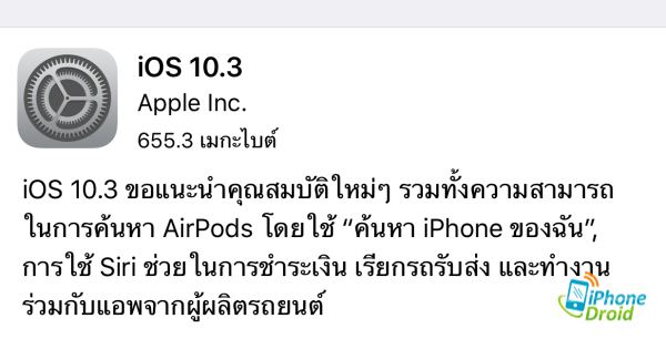 หลังจากที่ปล่อยตัว iOS 10.3 มาถึง 7 เบต้า ล่าสุดแอปเปิลได้ปล่อย iOS 10.3 เวอร์ชั่นเต็มออกมาให้ติดตั้งได้แล้วครับ