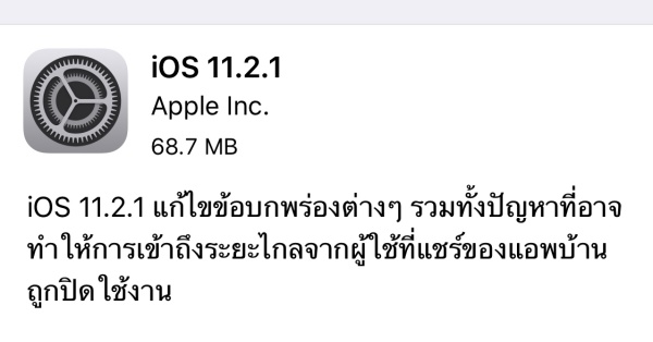 แอปเปิลออกอัปเดท iOS 11.2.1 เวอร์ชั่นเต็มมาให้ได้ติดตั้งกันแล้วครับ สามารถอัปเดทได้ทุกรุ่นที่รองรับ iOS 11 ผ่าน OTA