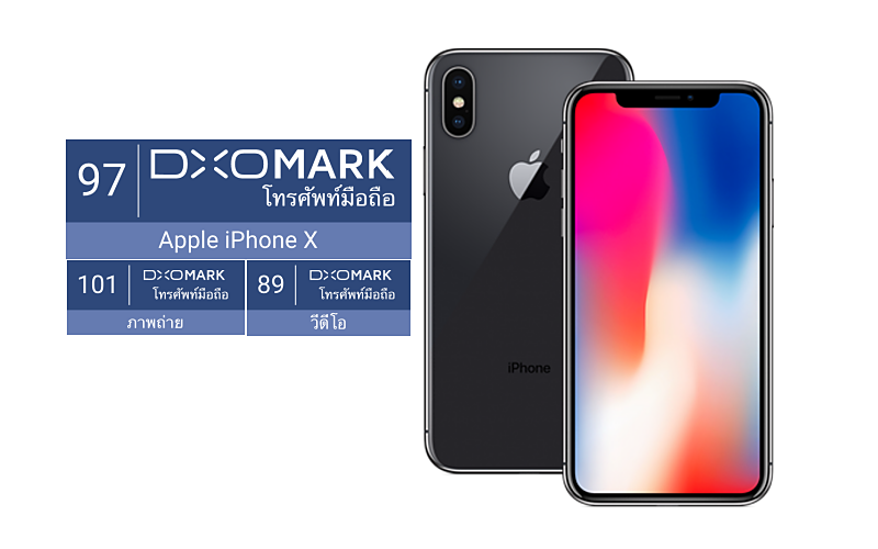 iPhone X สมาร์ทโฟนรุ่นพรีเมียมจาก Apple ขึ้นแท่นเป็นสมาร์ทโฟนรุ่นแรกที่สามารถทำคะแนนการถ่ายภาพนิ่งจาก DxOMark ได้สูงเกิน 100 คะแนน คือทำได้ 101 คะแนน ในขณะที่คะแนนด้านการถ่ายวิดีโอนั้นทำได้ 89 คะแนน รวมคะแนนเฉลี่ยของรุ่นนี้อยู่ที่ 97 คะแนน เท่ากับ Huawei Mate 10 Pro ตามหลัง Google Pixel 2 ที่ทำได้ 98 คะแนน ในขณะที่ Galaxy Note8 และ iPhone 8 Plus ทำได้ 94 คะแนน