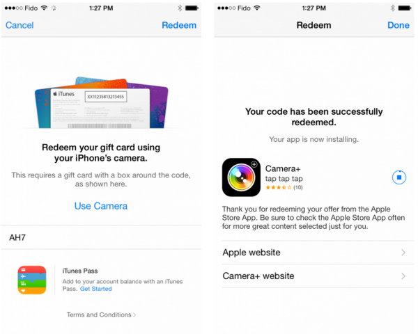 4. จากนั้นจะมีหน้า redeem แบบด้านล่างนี้ขึ้นมา ให้เรา Redeem ได้เลยครับ แค่นี้ก็ได้แอพ Camera+ มาใช้กันแบบฟรี ๆ ได้แล้ว