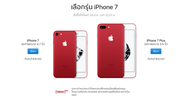 หลังจากที่ก่อนหน้านี้มีข่าวลือว่าแอปเปิลจะเปิดวางจำหน่าย iPhone สีแดง ล่าสุดแอปเปิลได้ประกาศวางจำหน่าย iPhone 7 และ iPhone 7 Plus สีแดง (PRODUCT)RED Special Edition ออกมาแล้ว