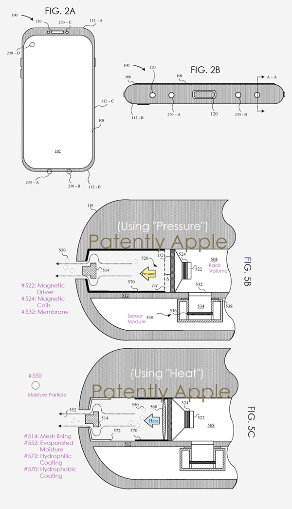 สิทธิบัตรดังกล่าวจดมาตั้งแต่ปี 2019 แต่เพิ่งนำออกมาเปิดเผยผ่านทาง US Patent และ Trademark Office ซึ่งอาจนำมาใช้งานร่วมกับ iPhone ในอนาคต โดยรายละเอียดระบุถึงระบบการปล่อยน้ำที่อยู่ในเครื่อง iPhone ที่ทำงานคล้าย Apple Watch 2 ขึ้นไปด้วยการใช้เซ็นเซอร์และลำโพงที่เคลือบสารกันน้ำ ช่วยป้องกันให้ลำโพงไม่เกิดความเสียหายเมื่อโดนของเหลว ทำให้ iPhone อาจมีระบบกันน้ำที่ดีขึ้นไปอีก