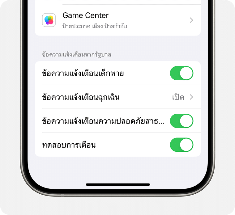 - ผู้ใช้งาน iOS สามารถอัปเดตซอฟต์แวร์เป็น iOS 18 หรือใหม่กว่า เพื่อเตรียมอุปกรณ์สำหรับรับทดสอบสัญญาณเตือนได้