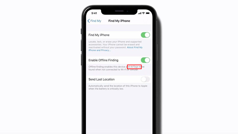 ในวิดีโอทำให้เราเห็นภาพข้อความที่ระบุในส่วนของ Find My iPhone ที่มีคำว่า AirTags ภายใต้ในหมวด “การค้นหาแบบออฟไลน์” ซึ่งน่าจะเป็นการยืนยันได้เป็นอย่างดี