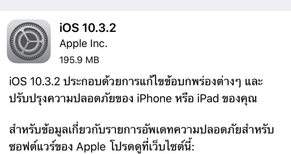 โดยการปล่อยอัปเดท iOS 10.3.2 ในครั้งนี้แอปเปิลได้ แก้ไขข้อบกพร่องของการทำงานต่