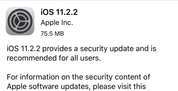 iOS 11.2.2 และ macOS 10.13.2 ในเวอร์ชั่นนี้สำคัญมากๆ นะครับ โดยแอปเปิลแนะนำให้อัปเดททุกคนเนื่องจากเกี่ยวข้องกับความปลอดภัยในการใช้งาน