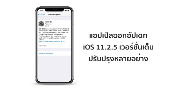 หลังจากที่ก่อนหน้านี้แอปเปิลได้ปล่อย iOS 11.2.5 เบต้าให้นักพัฒนาได้ทดสอบ ล่าสุดได้ปล่อย iOS 11.2.5 เวอร์ชั่นเต็มออกมาให้ติดตั้งแล้วครับ