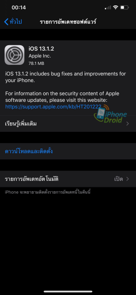ความเปลี่ยนแปลงในเวอร์ชั่น iOS 13.1.2 บน iPhone ดังนี้