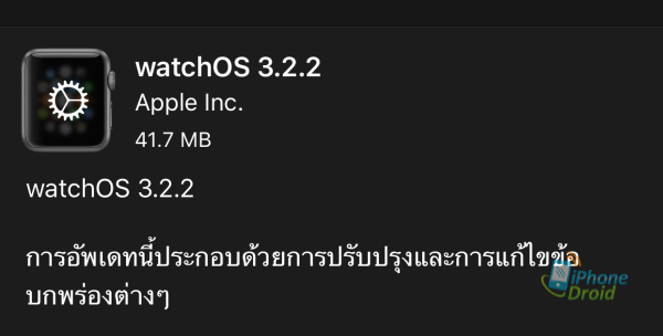 แอปเปิลออกอัปเดท watchOS 3.2.2 เวอร์ชั่นเต็มออกมาให้ได้อัปเดทกันแล้วนะครับ ไฟล์ขนาดประมาณ 41.7MB.