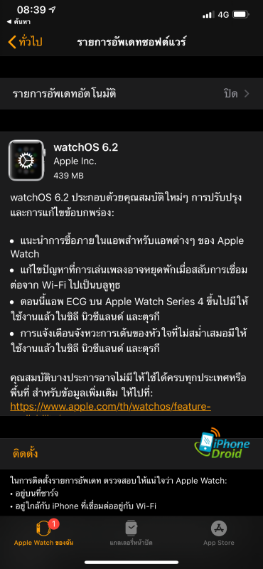 การอัปเดทเข้าไปที่ แอป Watch > General > Software Update