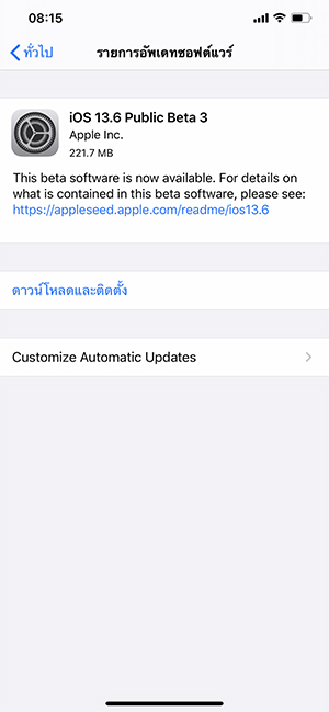 สำหรับ iOS 13.6 Beta 3 จะเป็นการเพิ่มประสิทธิภาพของอัปเดทในรุ่น Beta 2 ครับ โดยจะมีทั้งฟีเจอร์แบ่งการดาวน์โหลดการอัปเดทเป็นปุ่มดาวน์โหลดอัตโนมัติ ที่จะโหลดไฟล์เมื่อเชื่อมต่อ Wi-Fi และปุ่มติดตั้งอัตโนมัติ ที่จะติดตั้งข้ามคืนเมื่อโหลดไฟล์ไปแล้ว, รองรับ Car Key และแอปสุขภาพ เป็นต้น