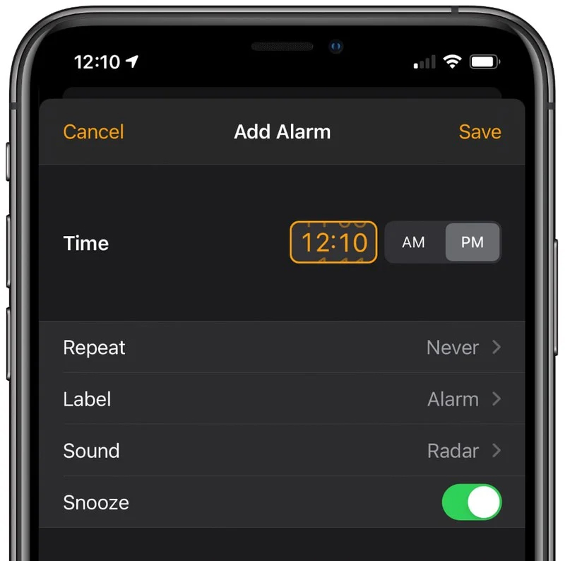 - ดีไซน์ตัวเลือกเวลาแบบใหม่ในแอปนาฬิกา : มีกรอบสีส้มในการเลื่อนเวลาในตอนตั้งนาฬิกาปลุก