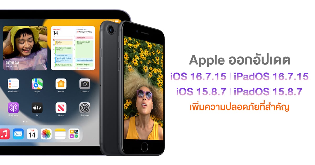 วันนี้ Apple ได้ปล่อยอัปเดต iOS 16.7.15, iPadOS 16.7.15, iOS 15.8.7 และ iPadOS 15.8.7 สำหรับ iPhone และ iPad รุ่นเก่าที่ไม่สามารถใช้งาน iOS และ iPadOS เวอร์ชันใหม่กว่าได้แล้วครับ