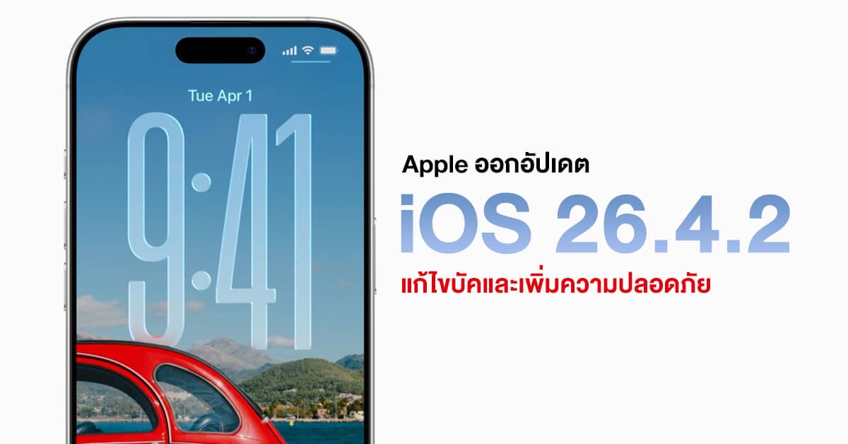 วันนี้ Apple ได้ปล่อยอัปเดต iOS 26.4.2 และ iPadOS 26.4.2 ออกมาให้ผู้ใช้งานทั่วไปแล้วครับ โดยเป็นการแก้ไขบัคและเพิ่มความปลอดภัยด้วย