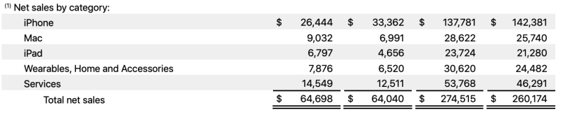 วันนี้ Apple ประกาศผลรายงานทางการเงินประจำไตรมาสที่ 4 ปีงบประมาณ 2020 สิ้นสุดเมื่อวันที่ 26 กันยายน 2020 บริษัทประกาศรายได้ประจำไตรมาสที่ 64.7 พันล้านเหรียญสหรัฐ พร้อมรายได้สุทธิประจำไตรมาส 0.73 เหรียญสหรัฐต่อหุ้นปรับลด ยอดขายในต่างประเทศถือเป็น 59 เปอร์เซนต์ของรายได้ประจำไตรมาส