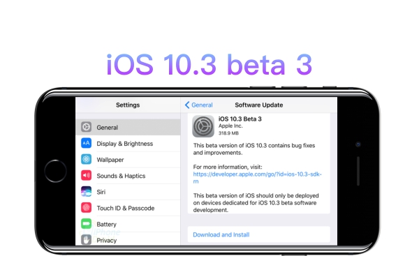 iOS 10.3 beta ขณะนี้สามารถอัปเดทได้เฉพาะผู้ที่ลงทะเบียนนักพัฒนาและผู้ที่เข้าร่วมโปรแกรมเป็นผู้ทดสอบ Public beta โดยเวอร์ชั่น Public beta จะตามมาในอีกไม่กี่วันหลังจากออกเวอร์ชั่นนักพัฒนา