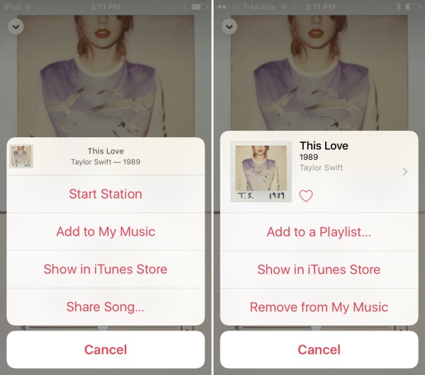 4. เมนู Music ปรับโฉมใหม่ ซ้าย iOS 9 beta 3 และ ขวา iOS 9 beta 4