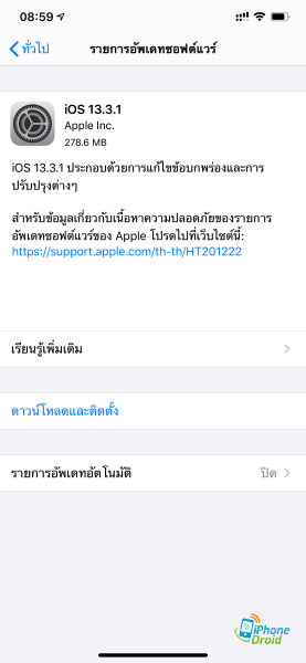 iOS 13.3.1 ประกอบด้วยการปรับปรุงและการแก้