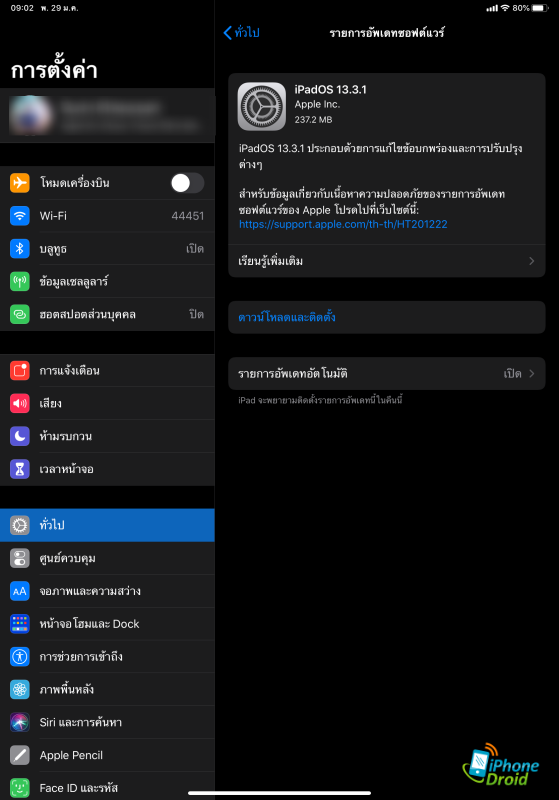 PadOS 13.3.1 ประกอบด้วยการปรับปรุงและการแก้