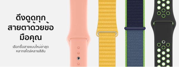 ก่อนอื่นเริ่มต้นจากการเลือกสายนาฬิกาที่สวมใส่สบาย ไม่รัดหรือหรือทำให้อึดอัดจนเกินไป ซึ่งสายนาฬิกาสำหรับ Apple Watch นั้น มีสาย Sport Band ทำจากยางคุณภาพสูงพร้อมตัวล็อคแบบเสียบหมุดแล้วสอดสาย, สาย Sport Loop และ Nike Sport Loop ที่ทำจากไนลอนถัก ระบายอากาศได้ดี, สาย Nike Sport Band น้ำหนักบา พร้อมรูที่อัดขึ้นรูปมากมาย ช่วยระบายอากาศ, สายหนัง ดีไซน์สวยพร้อมตัวล็อคแบบแม่เหล็กหรือสแตนเลสสตีล, สายหนัง Hermes ทำจากหนังลูกวัวฟอก ผลิตอย่างประณีต หรือ สายสแตนเลสสตีล ผลิตจากโลหะผสมแสตนเลสสตีล พร้อมตัวล็อคที่ออกแบบมาโดยเฉพาะ ทำให้สามารถเลือกเปลี่ยนได้ตามความชอบและโอกาสในการสวมใส่ โดยสามารถเลือกดูสายนาฬิกาแบบต่างๆเพิ่มได้ที่ https://www.apple.com/th/shop/watch/bands