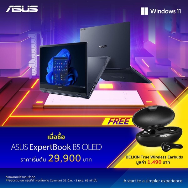 เอซุสขอนำทัพด้วยโน้ตบุ๊ก ASUS OLED ครบไลน์ นำโดย ASUS Zenbook Pro Duo 15 OLED (UX582) สุดยอดโน้ตบุ๊กสองหน้าจอที่มาพร้อมความคมชัดระดับ 4K เหมาะสำหรับนักสร้างสรรค์คอนเทนต์ระดับมืออาชีพ พิเศษ! รับฟรีหูฟังไร้สาย Redmi Buds 3 และ ASUS SimPro Dock มูลค่ารวมกว่า 5,980 บาท และสำหรับผู้ที่กำลังมองหาโน้ตบุ๊กพรีเมียม น้ำหนักเบา เอซุสขอแนะนำโน้ตบุ๊ก ASUS Zenbook อีกหลากหลายรุ่น อาทิ Zenbook Flip 13 OLED, Zenbook 14X OLED / 14 Flip OLED ที่สามารถเลือกปรับใช้งานได้หลากหลายรูปแบบทั้งโน้ตบุ๊ก และแท็ปเล็ต พร้อมปากกา ASUS Pen ที่ช่วยให้ใช้งานได้อย่างอิสระยิ่งขึ้น พิเศษ! เมื่อซื้อในงานรับฟรี! หูฟังไร้สาย Redmi Buds 3 มูลค่า 990 บาท