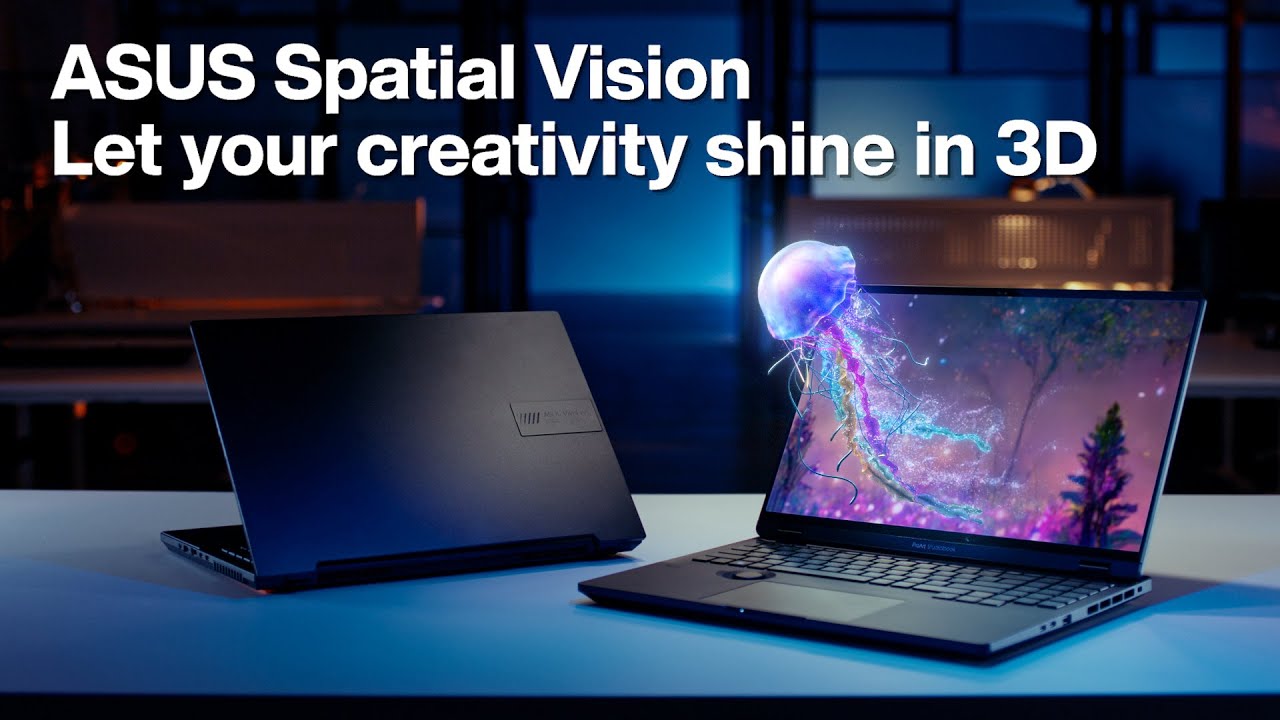 เอซุสยังแนะนำ ASUS Spatial Vision หรือเทคโนโลยี 3D OLED ที่ไม่ต้องใช้แว่นตัวแรกของโลก ให้ผู้ใช้ได้ดื่มด่ำกับประสบการณ์แบบสามมิติบนเครื่องโน้ตบุ๊ก โดยสามารถสลับการใช้งานได้ทั้งแบบ 2 มิติ และ 3 มิติ ซึ่งเทคโนโลยีนี้จะช่วยการทำงานของครีเอเตอร์ให้เห็นรายละเอียดและเอฟเฟ็กต์ของแบบได้โดยตรงบนหน้าจอ ช่วยประหยัดเวลาให้การทำงานมีประสิทธิภาพมากขึ้น