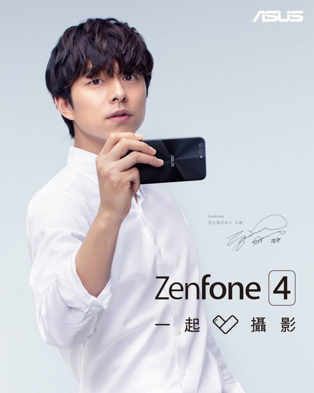 ภาพทีเซอร์เพื่อโปรโมท Zenfone 4 ในครั้งนี้มีพรีเซ็นเตอร์เป็นนาย กง ยู หรือ กง จี ชอน นักแสดงและพิธีกรสัญชาติเกาหลี ที่มีชื่อเสียงโด่งดังมาจากละครซีรีส์เกาหลีเรื่อง รักวุ่นวายของเจ้าชายกาแฟ (Coffee Prince) และเห็นภาพตัวเครื่องด้านหลังชัดเจนว่ามีกล้องหลังเป็นเลนส์คู่