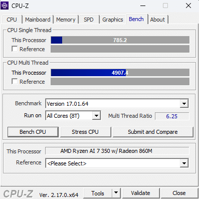 • CPU-Z : Single Thread 785.2 / Multi Thread 4,907.4