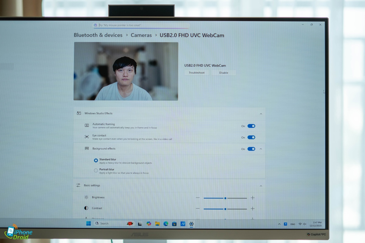 เรื่องของกล้องก็มีการทำงานที่ฉลาดเหมือนกัน โดยจะเป็นการใช้งานบนฟีเจอร์ Windows Studio Effect ที่สามารถปรับให้จัดเฟรมของตัวเราได้เมื่อมีการขยับไปมา หรือจะเป็น AI เพื่อให้เหมือนกับจ้องกับกล้องตลอดเวลา หรือจะเป็นการเบลอฉากหลังได้อย่างยอดเยี่ยมครับ