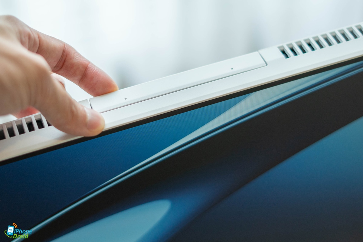 การพัฒนาในเรื่องดีไซน์ของขอบจอล่างนั้นบางลงเหลือเพียง 15.6 มม. เท่านั้น ทำให้พื้นที่การใช้งานหน้าจอแสดงผลจริงๆ นั้นมากขึ้นกว่าเดิม และไม่มีอะไรมารบกวนสายตามากเกิน