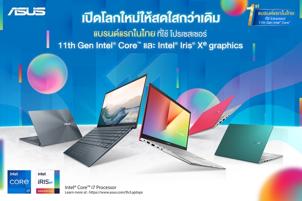 เอซุส (ประเทศไทย) เปิดตัวโน้ตบุ๊กที่ใช้โปรเซสเซอร์ใหม่ล่าสุด 11th Gen Intel Core มาพร้อมกราฟิกการ์ดรุ่นใหม่ Intel Iris X graphics นำเสนอพลังของเทคโนโลยี AI เพื่อให้ความเร็วอันเหนือชั้นและประสิทธิภาพอันชาญฉลาดสำหรับผู้ใช้งาน พร้อมแนะนำเทคโนโลยีใหม่ล่าสุด AIPT (ASUS Intelligent Performance Technology) ที่ช่วยเพิ่มประสิทธิภาพการทำงานให้รวดเร็วขึ้นกว่า 40% ทั้งยังมาพร้อม Intel WiFi 6 และ Thunderbolt 4 ให้การเชื่อมต่อที่รวดเร็วและเสถียร นำโดย ASUS VivoBook Series และ ASUS ZenBook UX425 โดยวางจำหน่ายผลิตภัณฑ์ 11th Gen Intel Core นี้เป็นแบรนด์แรกในไทย ทั้งยังมาพร้อม Windows 10 Home และ Pre-installed Office Home and Student 2019 ติดตั้งพร้อมใช้มอบความสะดวกสบายแก่ผู้ใช้งานสูงสุด