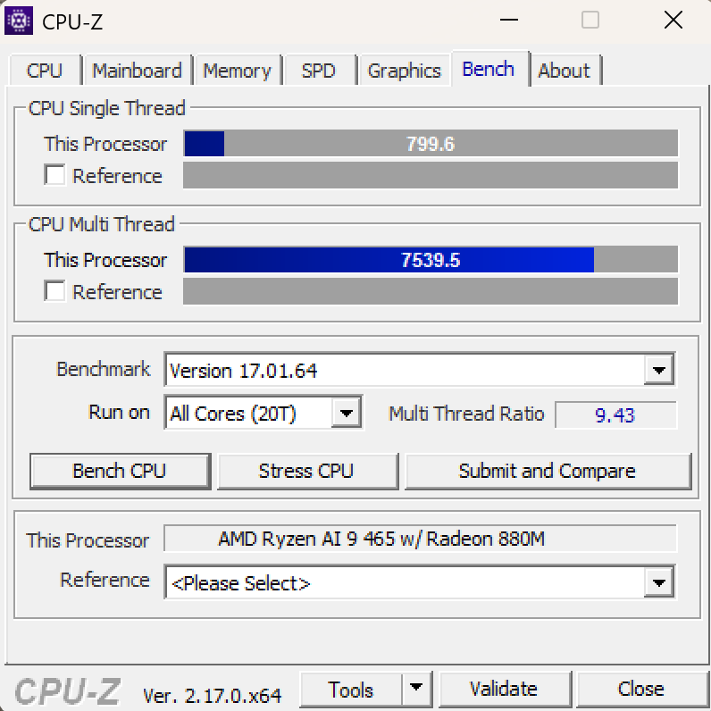 • CPU-Z : Single Thread 799.6 / Multi Thread 7539.5