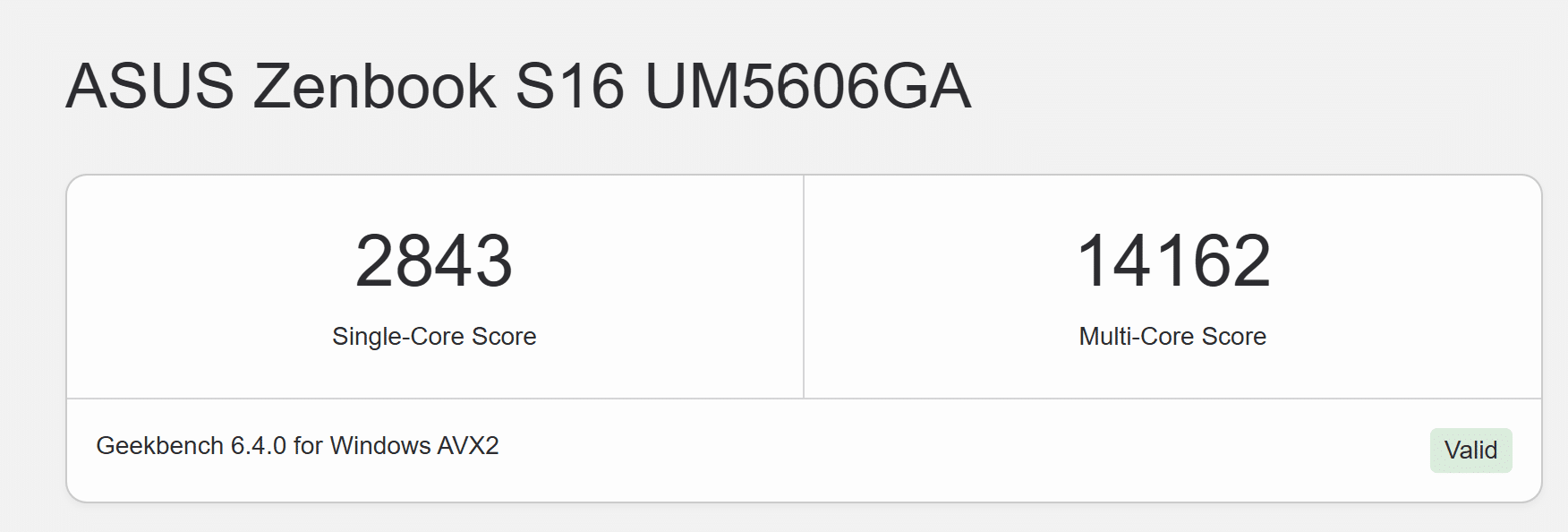 • Geekbench 6.4.0 for Windows : Single Core 2,843 / Multi Core 14,162