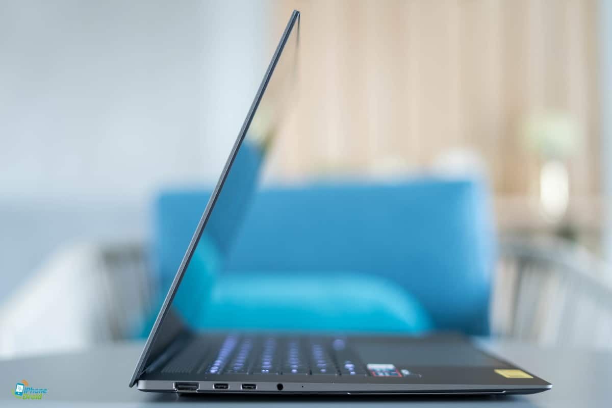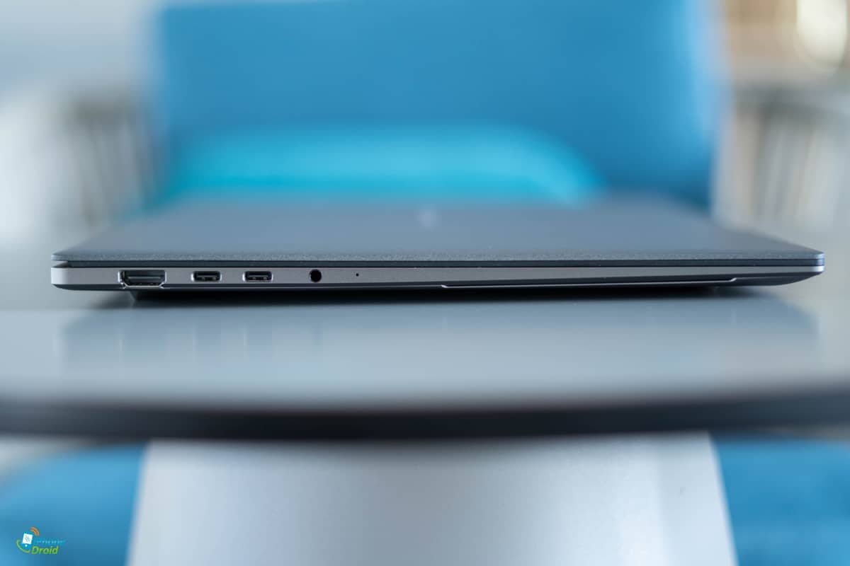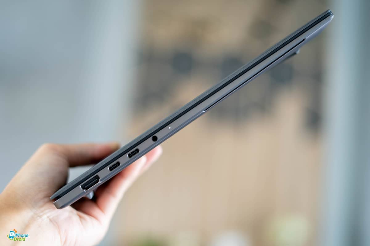 อีกอย่างที่เห็นได้ชัดเจนเลยคือความบางตัวเครื่องที่บางเฉียบจริงๆ บางสูงสุดถึง 1.19 เซนติเมตรเท่านั้น ขณะที่น้ำหนักก็อยู่ที่ 1.5 กิโลกรัม ทำให้พกพาไปทำงานนอกสถานที่ก็สะดวกจริงๆ
