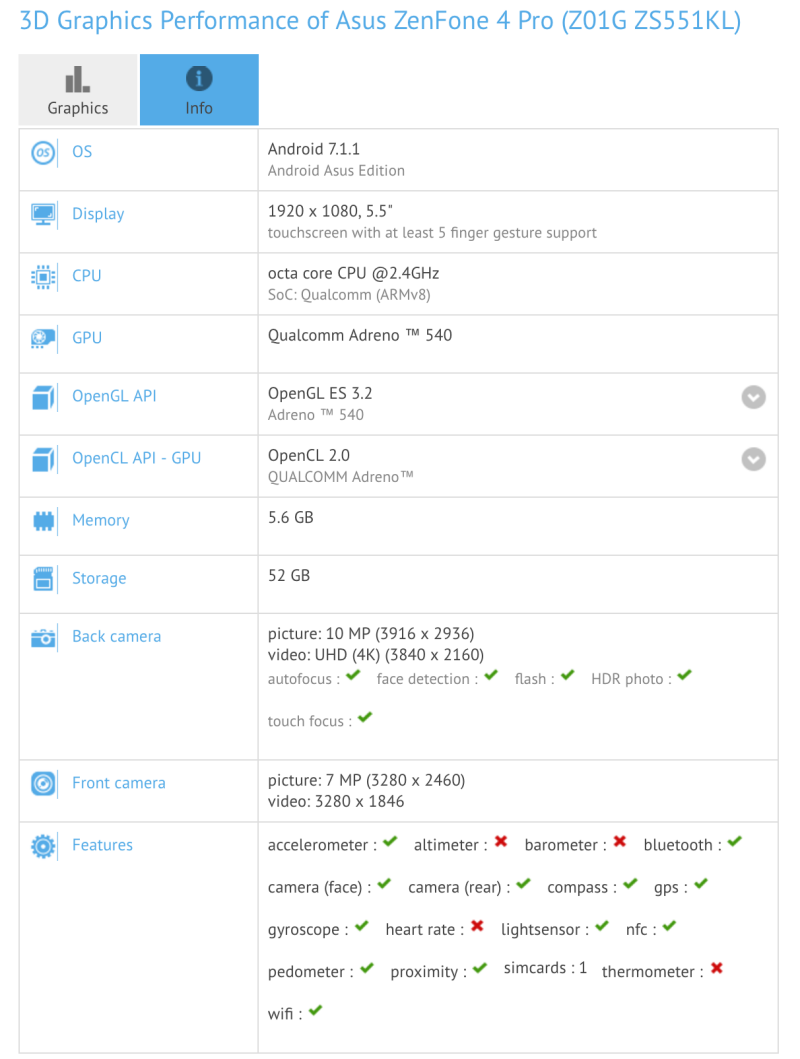 พบอีกรุ่น ASUS Zenfone 4 Pro บนฐานข้อมูล GFXBench รุ่นท็อป สเปคจัดเต็มที่สุด มาพร้อมชิปเซ็ต Snapdragon 835 และแรม 6GB หลังจากมีข้อมูลหลุดออกมาก่อนหน้านี้หลายนรุ่น